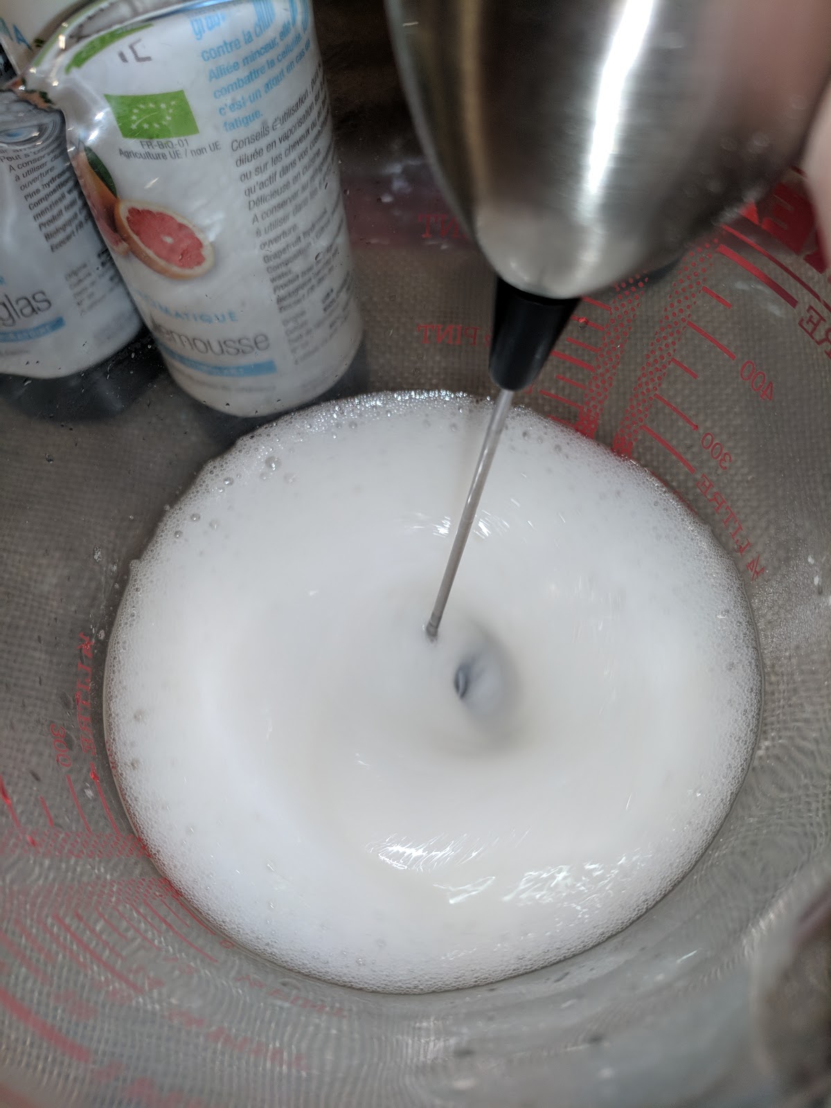 5. Se iau de pe foc si se combina. Se foloseste un blender, sau un un Milk Frother, noua mea jucarie.